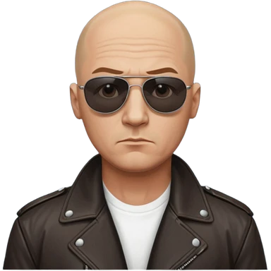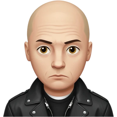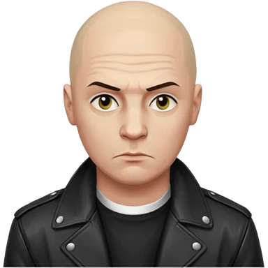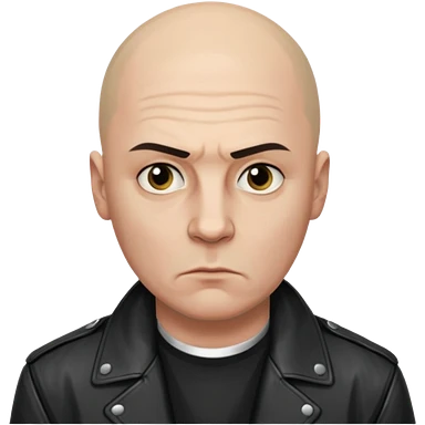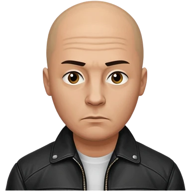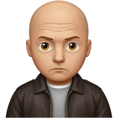 Bald Russian 1990s gangster emoji, leather jacket, , serious face emoji