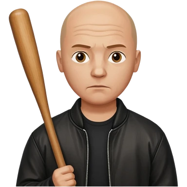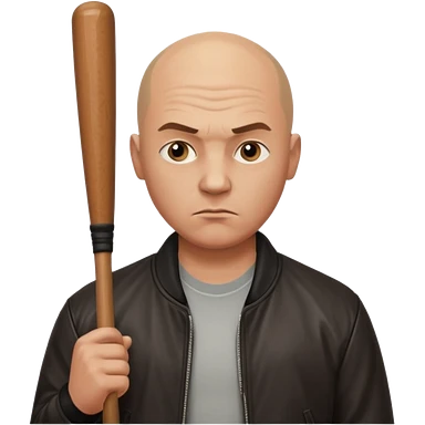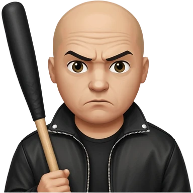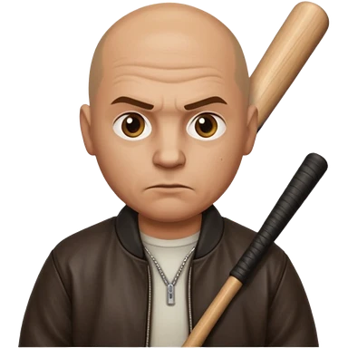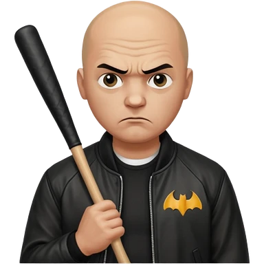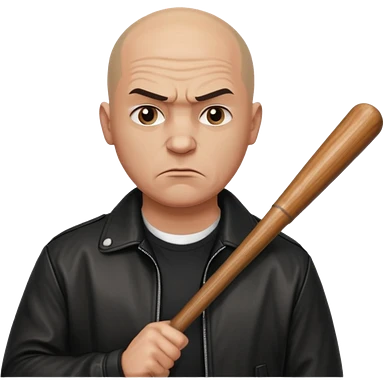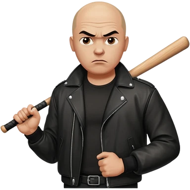 Bald Russian 1990s gangster emoji, leather jacket, , serious angry face with a bat emoji