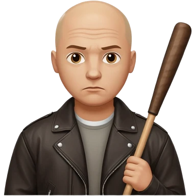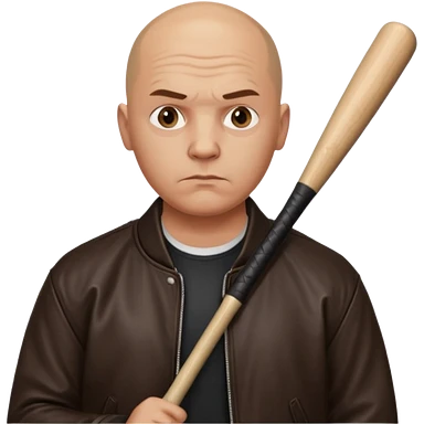Bald Russian 1990s gangster emoji, leather jacket, , serious face with a bat emoji
