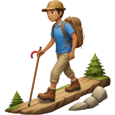 Old man leaning on a walking cane and holding his crancky back with his hand grumpy face, detailed emoji