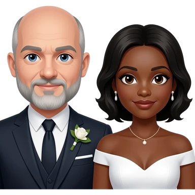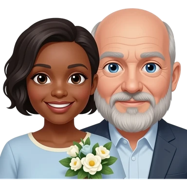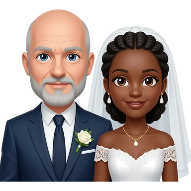 Bald White man with salt and pepper beard marrying a black Nigerian women emoji