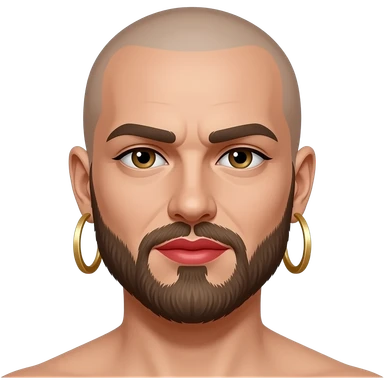 Bald Man with beard with red lipstick And big earrings emoji
