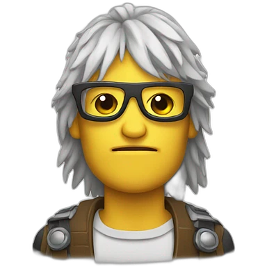 Korean techno DJ girl, wearing a stylish edgy outfit with metallic chains, long black hair, performing in a neon-lit underground club, cyberpunk aesthetic, high-detail 3D emoji style, energetic and intense vibe. emoji
