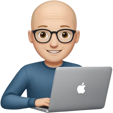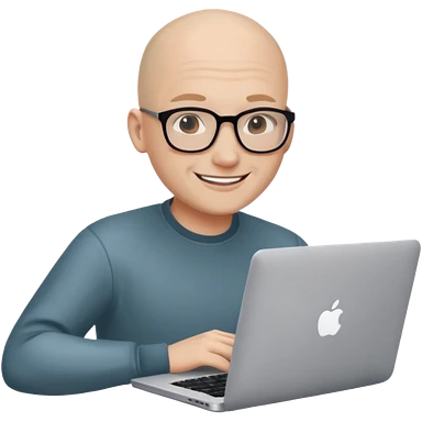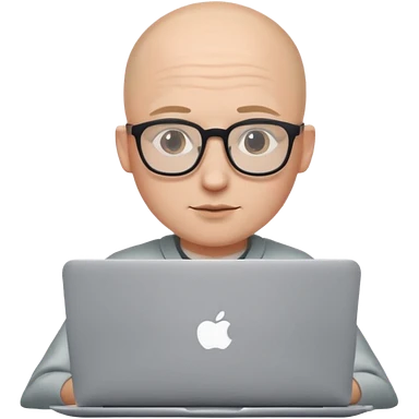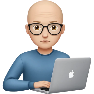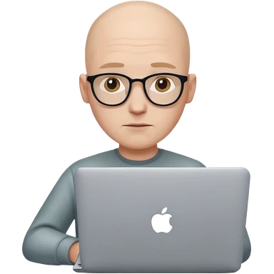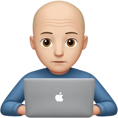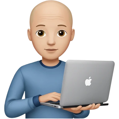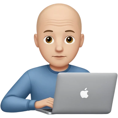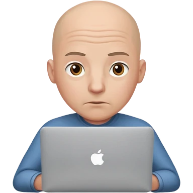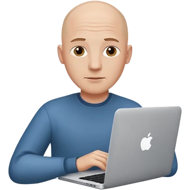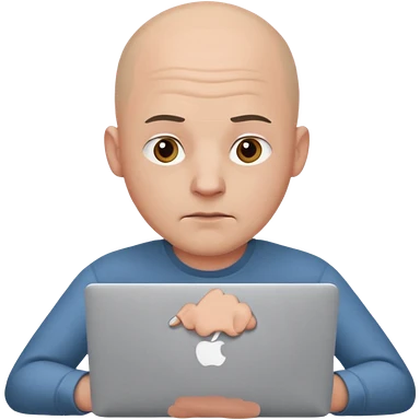 bald young guy with macbook no wringle on face emoji