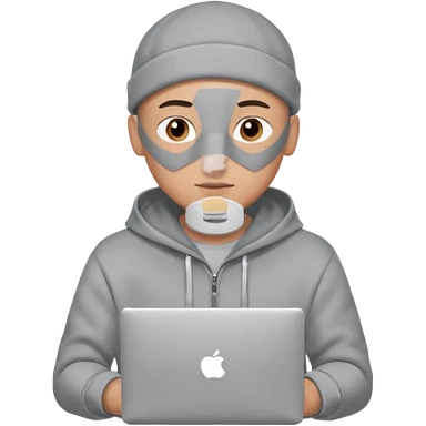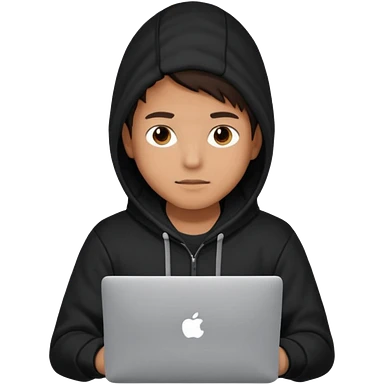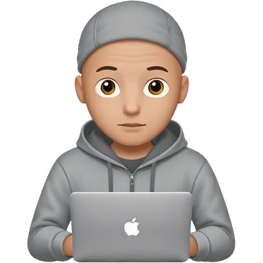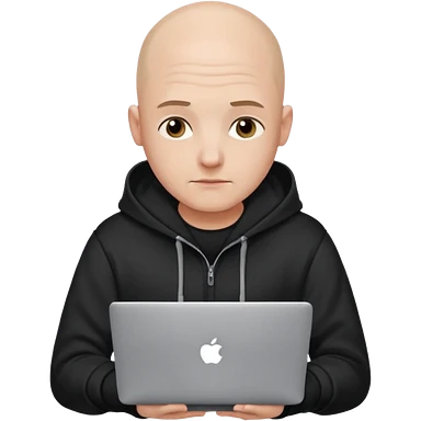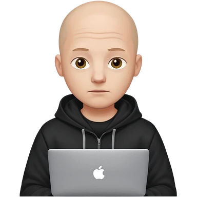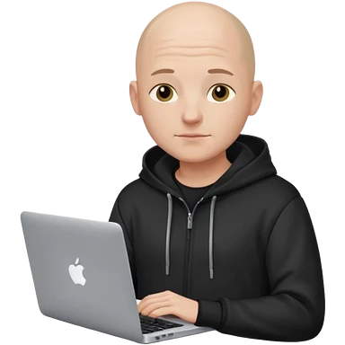 bald young programmer with MacBook wears huudy emoji | AI Emoji Generator