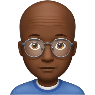 Balding man with receding hair, grey hair only on the sides, green eyes, rectangular reading glasses, rounded clear face, with a smile emoji