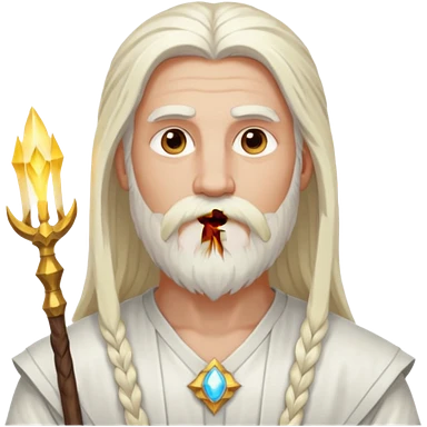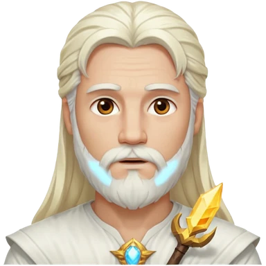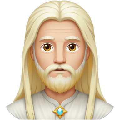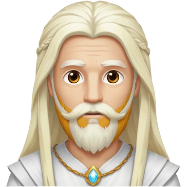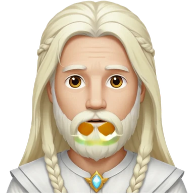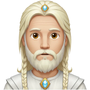 Baldr, God of Light from Gods and Goddesses with long platinum blonde hair and beard, white outfit emoji