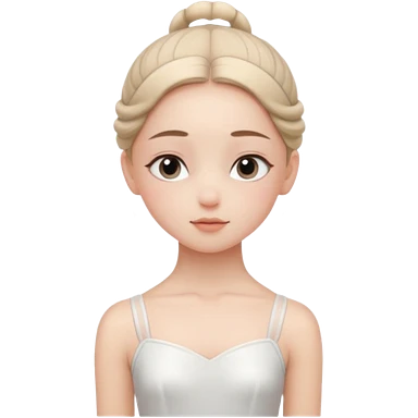 White Suit – Dreamy Young ballerina in white outfit, eyes half-closed, peaceful dreamy mood. emoji