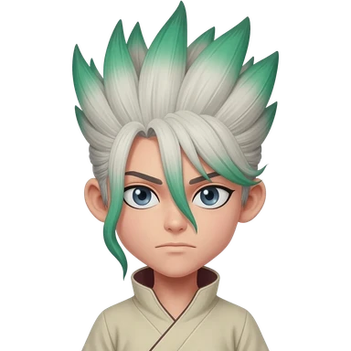 Seku from Dr stone grey green fade hair emoji