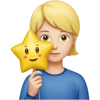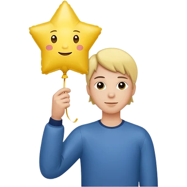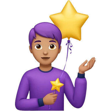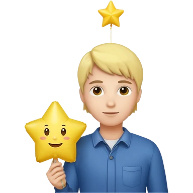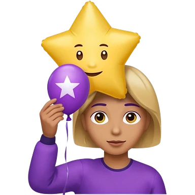 A yellow star with a small smile holding a balloon in his left hand and a lollipop in his right hand wearing a top hat emoji