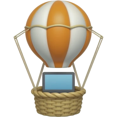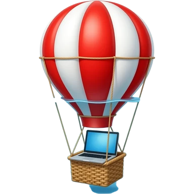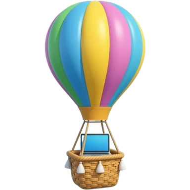 a laptop in the hot air balloon a small one in the bassket under the big sea emoji