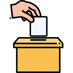 An icon featuring a ballot box with a voting paper, a government building with columns, and a scale of justice, symbolizing political science. The design includes a world map in the background, representing global political systems. Transparent background highlights governance and civic studies. emoji