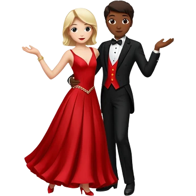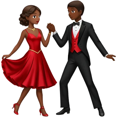 Ballroom dancing with girlred and boyblack girl bend on his hand emoji | AI Emoji Generator