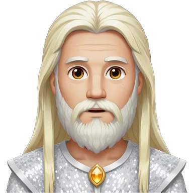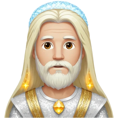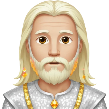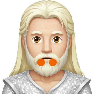 Baldr, God of Light with long white blonde hair and beard, white sequin outfit emoji