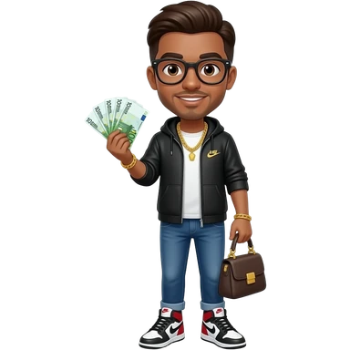 Bana bir gözlük takmış elinde püssürü euro parası olan ve altın zincir takmış nike ayakkıbı giymiş emoji