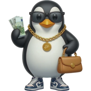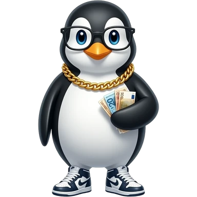 Bana bir gözlük takmış elinde püssürü euro parası olan ve altın zincir takmış nike ayakkıbı giymiş bir penguen emoji yap emoji