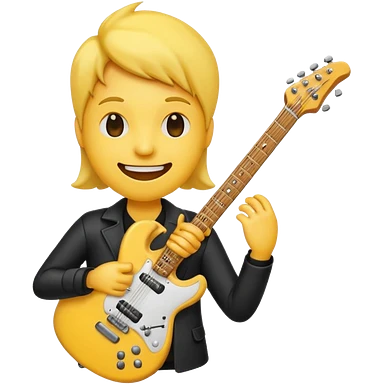 Bana elektronik gitar emojisi yap ama bir tane yüz emojisinin elinde olsun elektronik gitar siyah olsun emoji | AI Emoji Generator