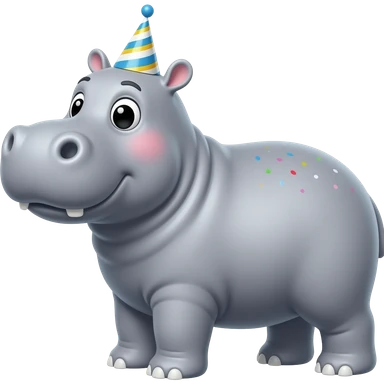 Hippo birthday! Party hat and confetti and happy on its birthday emoji