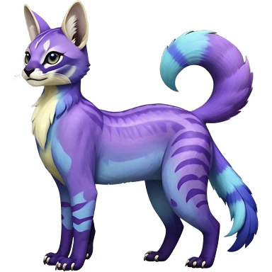 banana-cream-colored, tropical tribal glorious iridescent divine exotic cute cool beautiful beautiful fantasy-caracal-civet-genet-sergal-vernid-Gryphon-Cacomistle-Trico-oncilla-animal-Fakémon-hybrid-fursona (full body) with light slight indigo-violet-gradients accents emoji