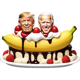 Donald Trump and Joe Biden sharing a giant banana split sundae emoji