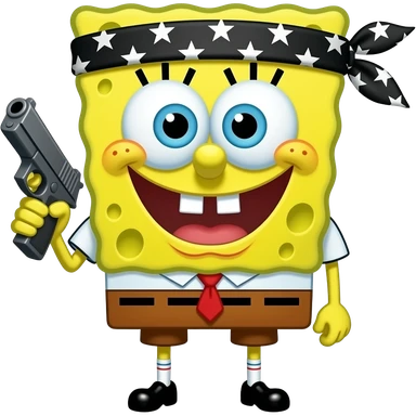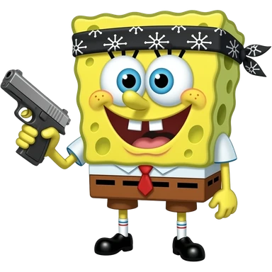 Black sponge bob with a bandana and a glock emoji emoji
