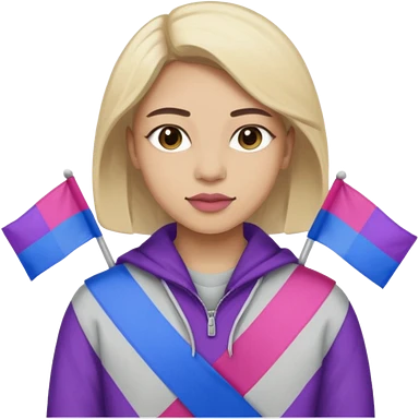 La bandera bisexual (lleva 3 franjas: la de arriba color magenta, abajo azul y en medio morada) emoji