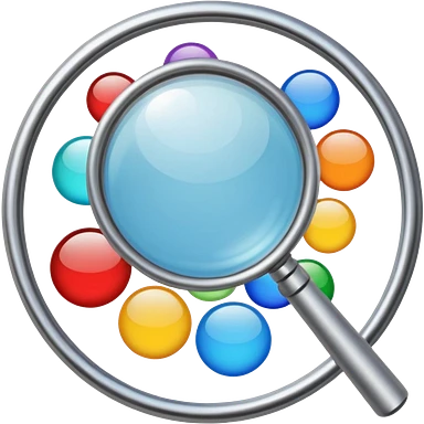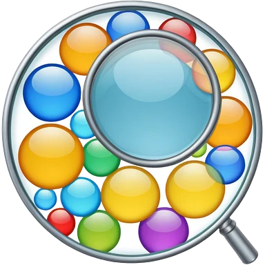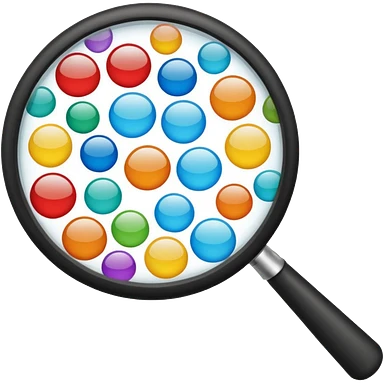 genera una lupa que este apuntando a solo 1 nicho dentro de varios nichos que hay en el mercado (HACIENDO QUE EN LA LUPA ESTE EL MAS IMPORTANTE) LA LUPA DEBE SER UNA LUPA REAL QUE ESTE VIENDO A VARIOS CIRCULOS DE DIFERENTES COLORES emoji