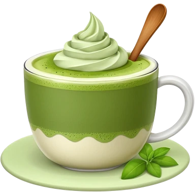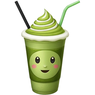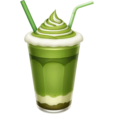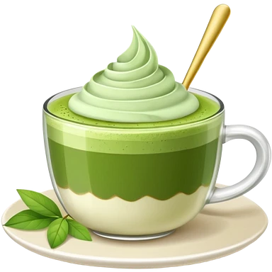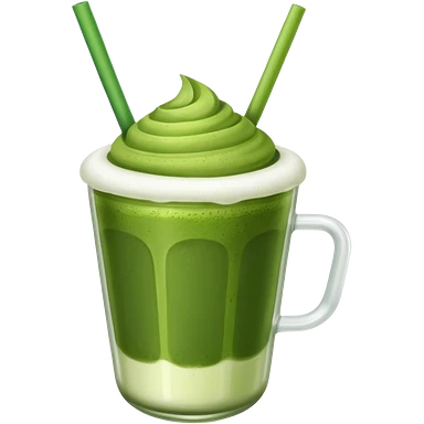 Emoji glossy 3D de un vaso de matcha latte, vaso de vidrio transparente con matcha espumoso verde pastel, capas suaves de leche y matcha, brillo intenso tipo sticker, sombras delicadas, fondo transparente, estilo cute moderno, alta calidad emoji