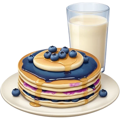 A pancake with blueberries and a glass of milk on the side emoji