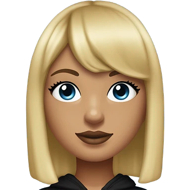 sun tanned girl with blonde and baby blue straight hair with curtain bangs, and Taylor Swift like makeup, in a black over-sized hoodie and leggings emoji