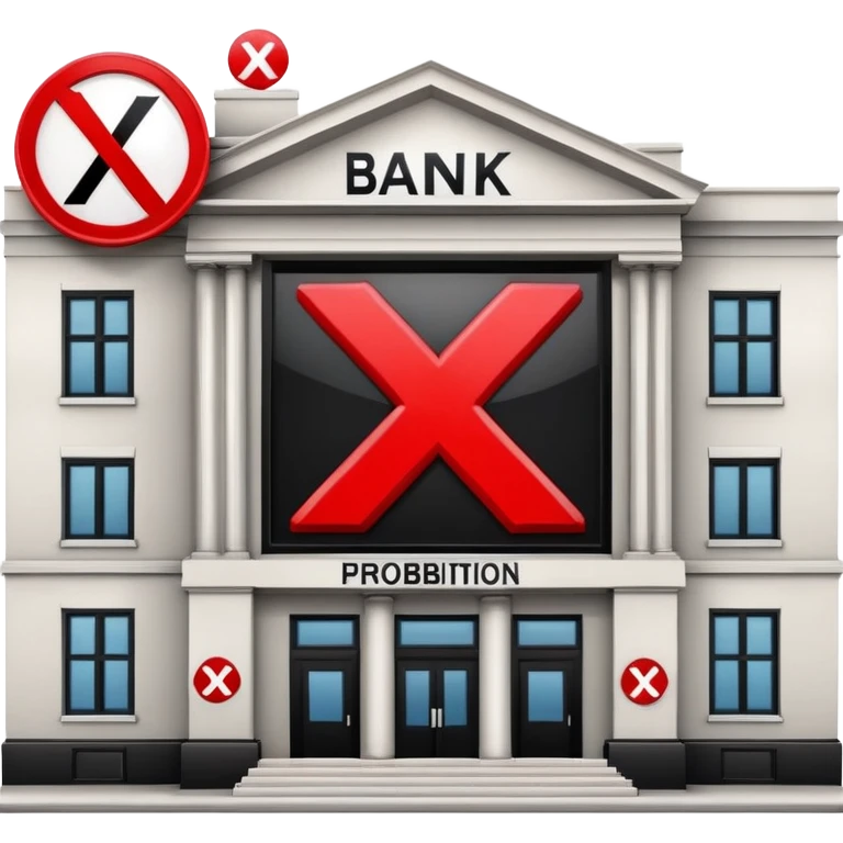 bank building with a large red X over it, prohibition sign emoji | AI Emoji Generator