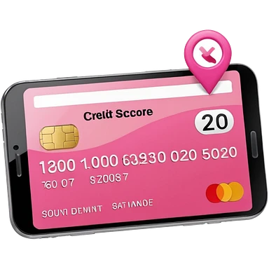 credit card with a red exclamation mark, showing negative bank balance emoji