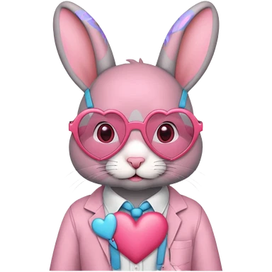 Gray bunny wearing heart-shaped glasses, half body with shirt emoji