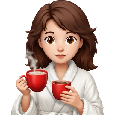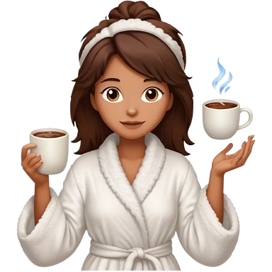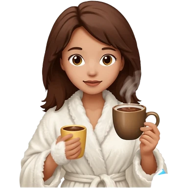 { "type": "human", "look": "fluffy robe woman, messy hair, holding cup of cocoa", "description": "a woman in a fluffy robe with messy hair, holding a cup of cocoa" } emoji