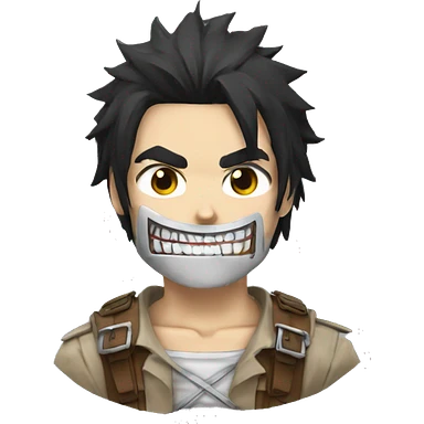 Eren's Attack Titan form from Attack on Titan, muscular with long dark hair and exposed teeth emoji