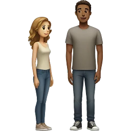 couple of boy and girl. boy is taller than her, he is strong, with dark, short, curly hair and brown small eyes. she is brunette and beautiful emoji