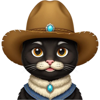 combine the cowboy empjis with a bclack cat emoji and make it have a moustache emoji