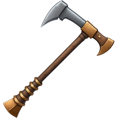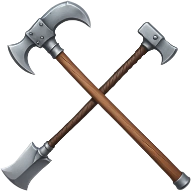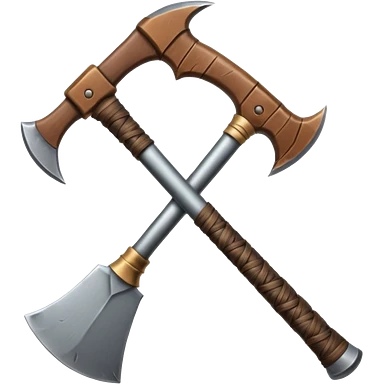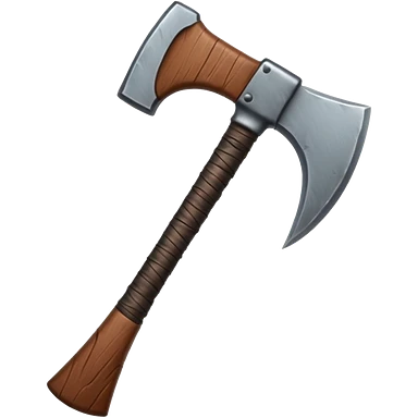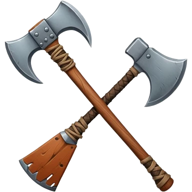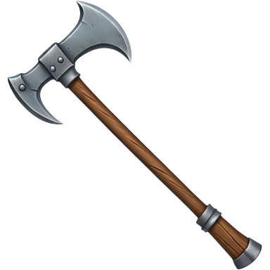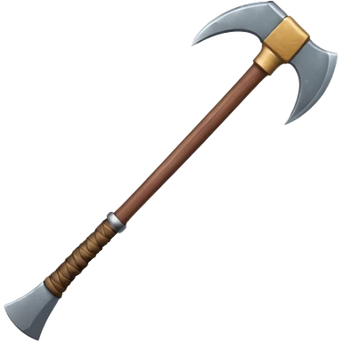 barbarian axe object icon, huge double-bladed axe, rough metal, wooden handle, leather wraps, fantasy style, 3D cartoon, mobile game icon style, centered, clean background, soft shadow, no text, no watermark emoji | AI Emoji Generator