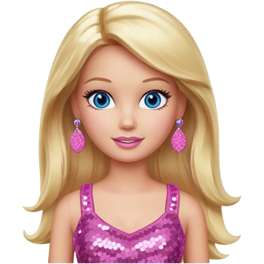 Barbie from Barbie & Friends with blue eyes, long blonde hair, pink sequin crop top emoji