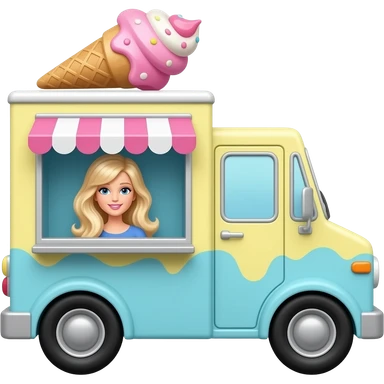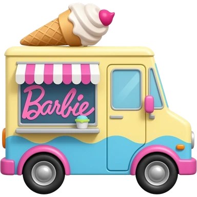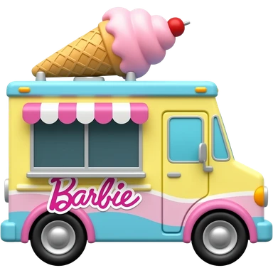 barbie ice cream truck with soft yellow pink blue colour give Barbie icon emoji