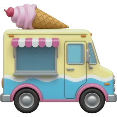 barbie ice cream truck with soft yellow pink blue colour give word barbie on truck emoji