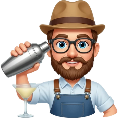 white bartender with facial hair and big quiff brunette hair shaking up a cocktail and dancing emoji