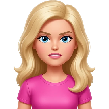 barbie character wearign a pink shirt with sleeves with a bored expression emoji