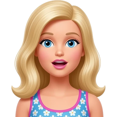 barbie character with a suprised expression emoji