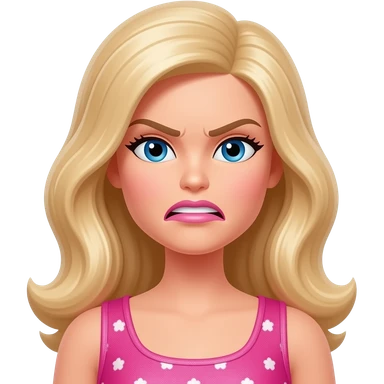 barbie character wearign a pink shirt with sleeves with an angry expression emoji