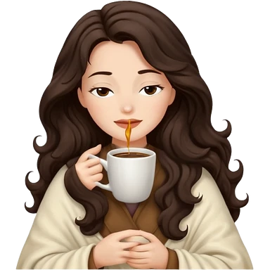 girl black hair wavy inside a blanket sipping coffee eyes closed emoji