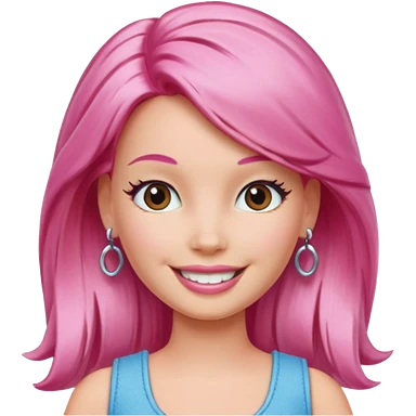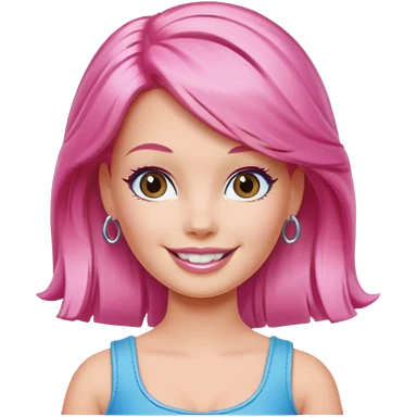 Barbie emoji with earrings and nose piercings and a cross necklace and blue eyes with bow in hair and tube top and long lashes with freckles emoji