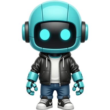 tiny cyan robot in street wear emoji