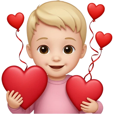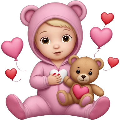 baby on a paper background with valentines day decor emoji