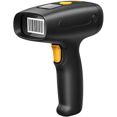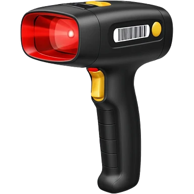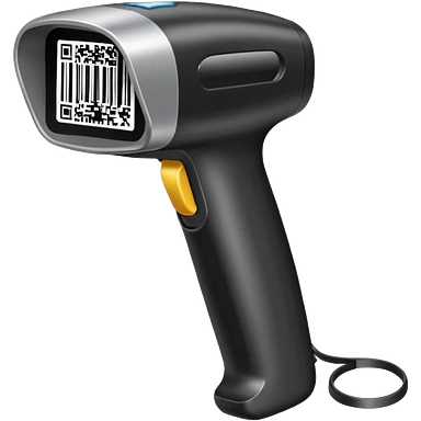 apple style emoji of a modern barcode scanner with visible barcode and red scanning light, stylized emoji